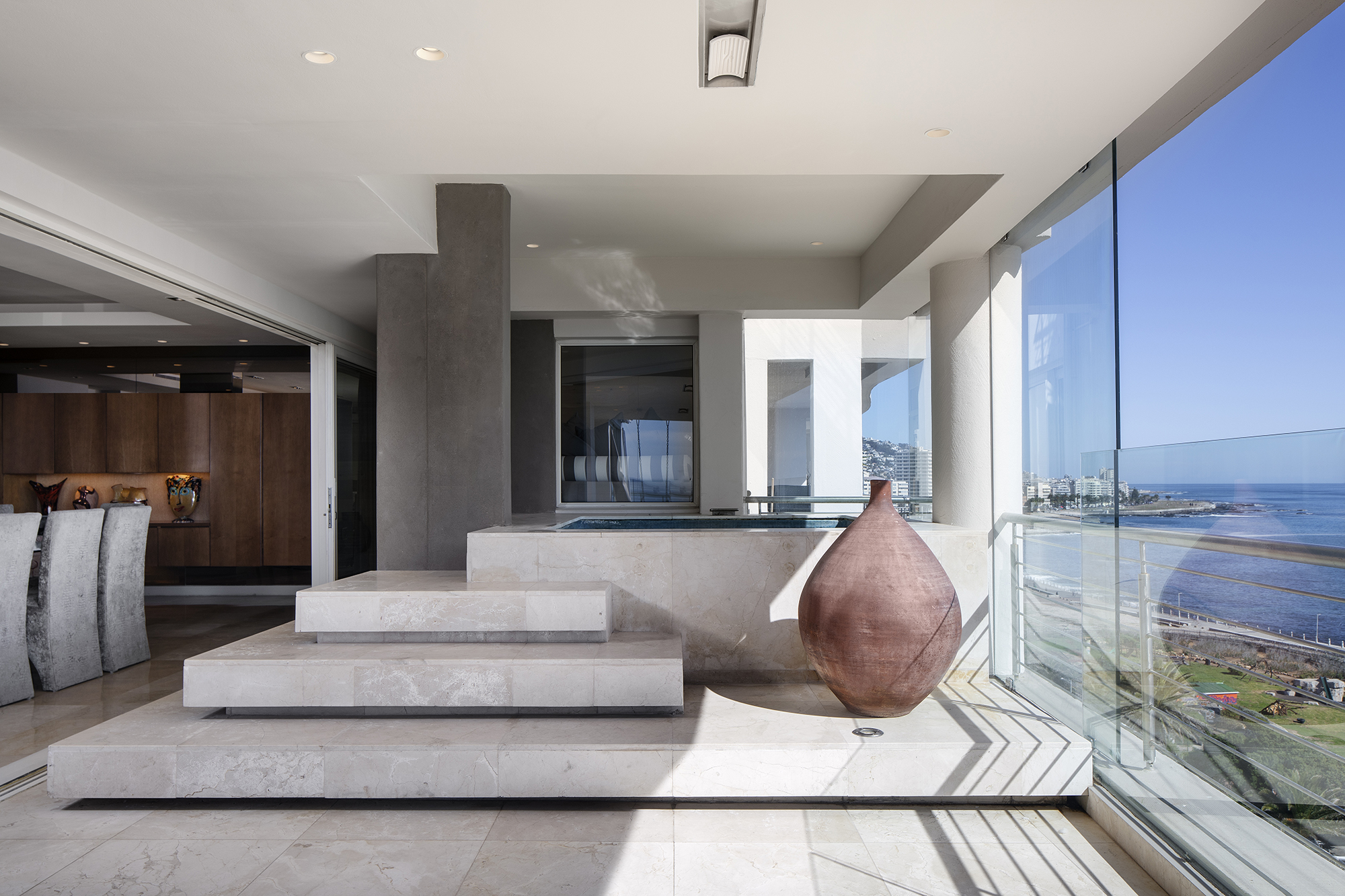 This North facing penthouse apartment is perfectly complemented by private balconies that are carefully designed to optimize views of the ocean, mountain and iconic Robben Island.