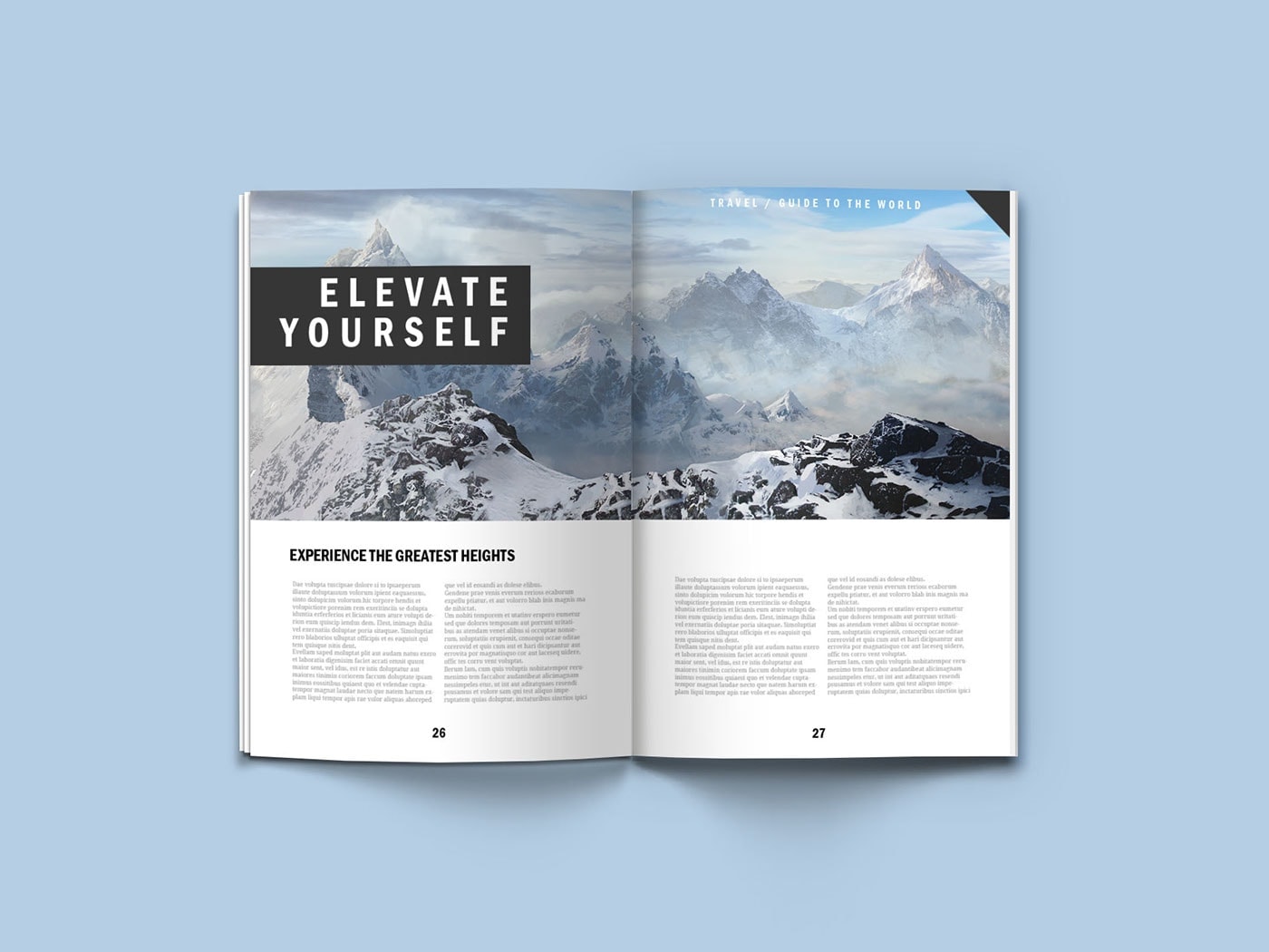 Showcase your magazine spreads in a very realistic manner with this fully editable PSD template. Just drag and drop your design inside the PSB file and the smart objects will finish the job for you.
